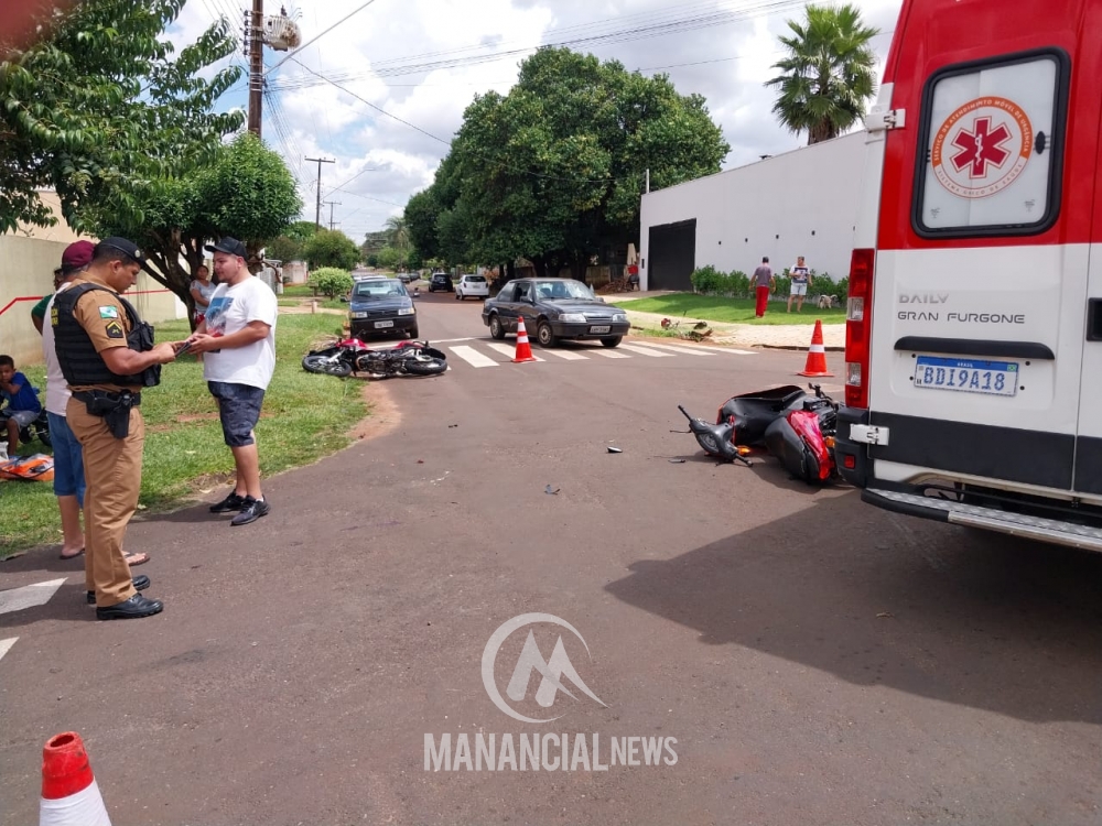 De acordo com as informações, a Honda Biz transitava pela rua Toledo e a XRE 300 vinha pela rua Guaíra quando acabaram se chocando.