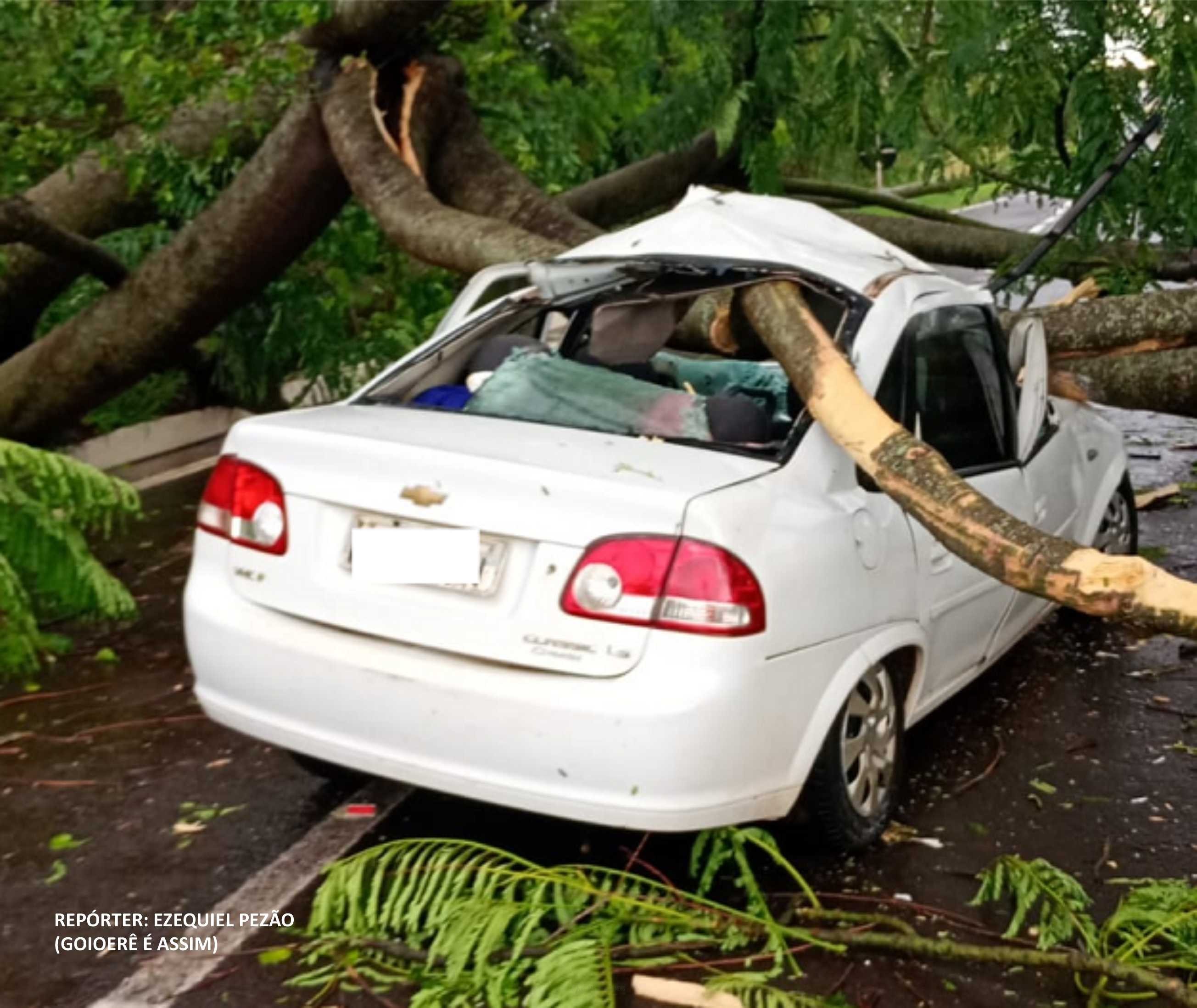 . Parte do tronco atravessou o carro, atingindo a cabeça do motorista e destruindo completamente o automóvel. Mesmo ferido, o jovem conseguiu sair do veículo com dificuldade, sendo socorrido por pessoas que passavam pelo local e acionaram o SAMU.