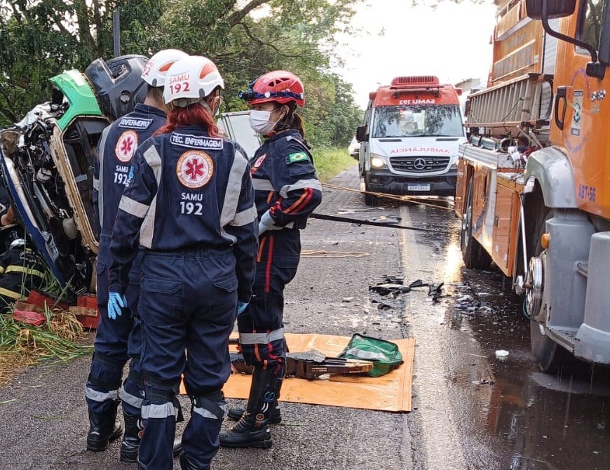 Na van, o motorista ficou com as pernas presas nas ferragens e precisou ser resgatado por meio de técnicas de desencarceramento. Três pacientes que seguiam para atendimento no Ceonc, em Cascavel, também foram retirados do veículo pelas equipes de socorro, uma sofreu ferimentos moderados e duas tiveram ferimentos leves.